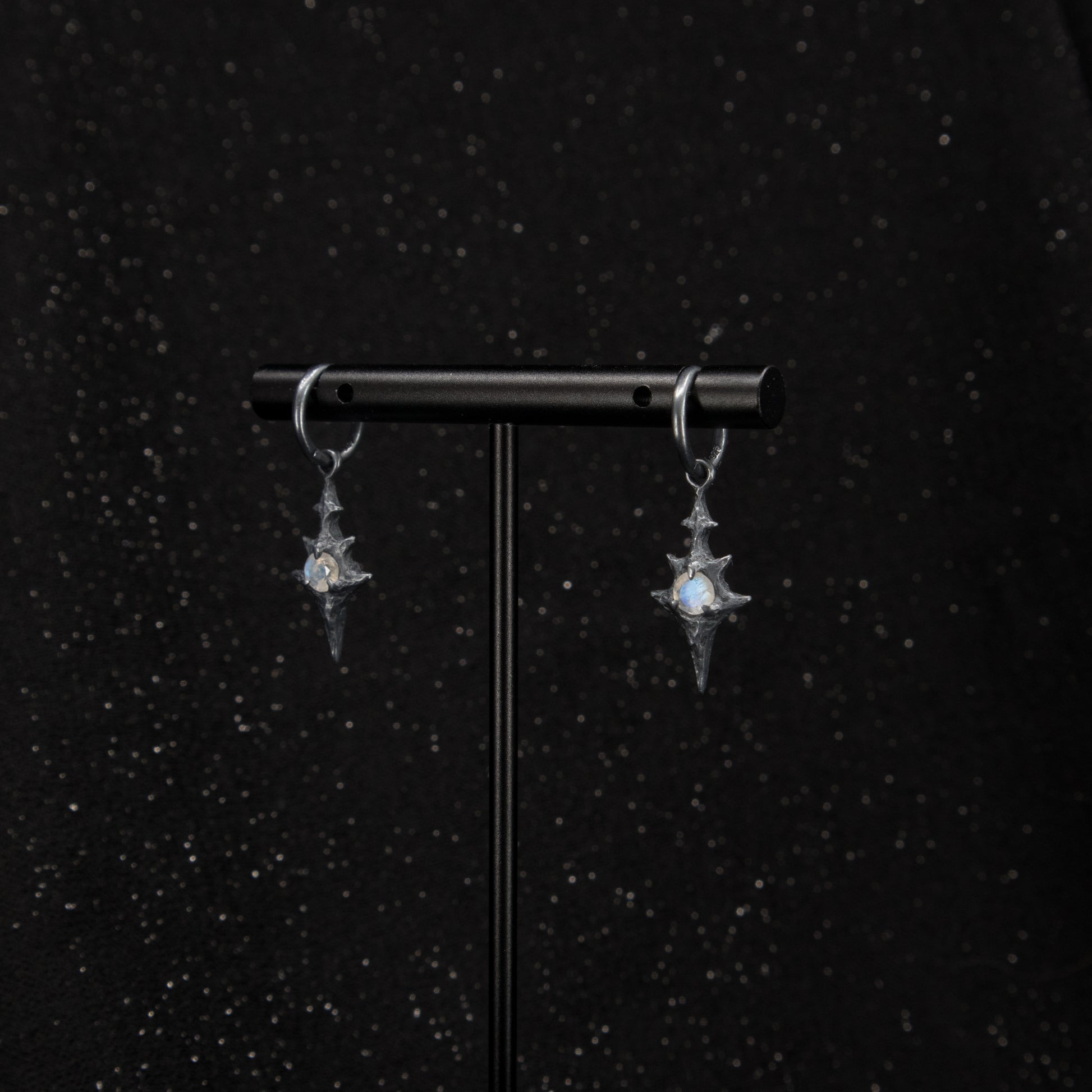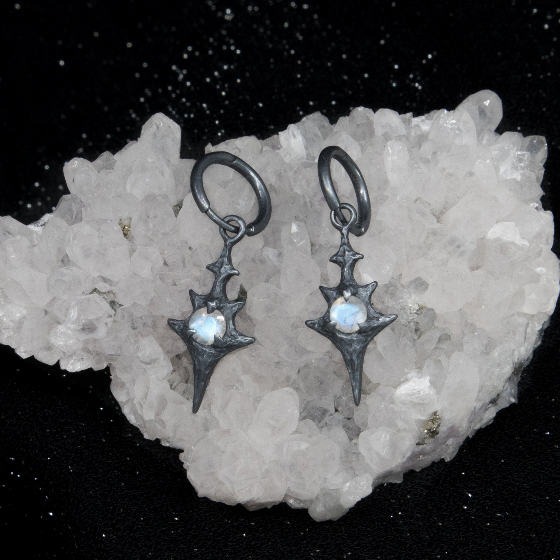 Eldritch Hoop Earrings - Rainbow Moonstone - Ready to ship