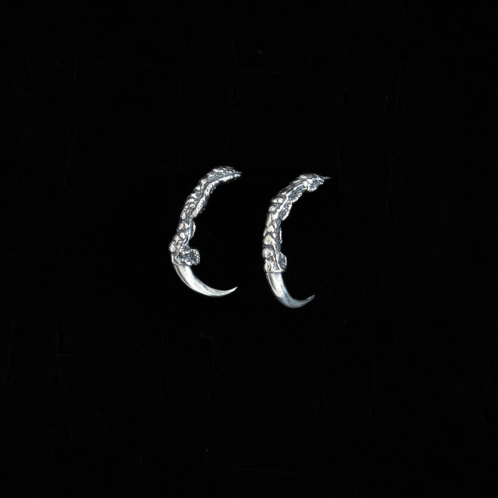 These earrings are made from sterling silver claws of a large parrot and make a half hoop style earring. They have an antique polished finish.